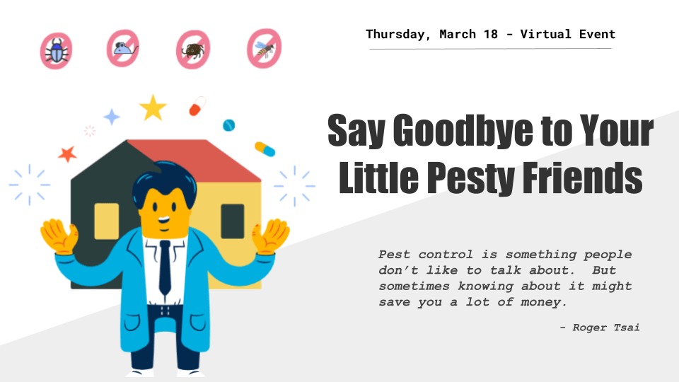 3/18 Say Goodbye to Your Little Pesty Friends On 16 Mar 202126 Mar 2021 By yujouwangIn Uncategorized Thanks everyone for joining this event! See the news press here! Share this: Click to share on X (Opens in new window) X Click to share on Facebook (Opens in new window) Facebook Like Loading...